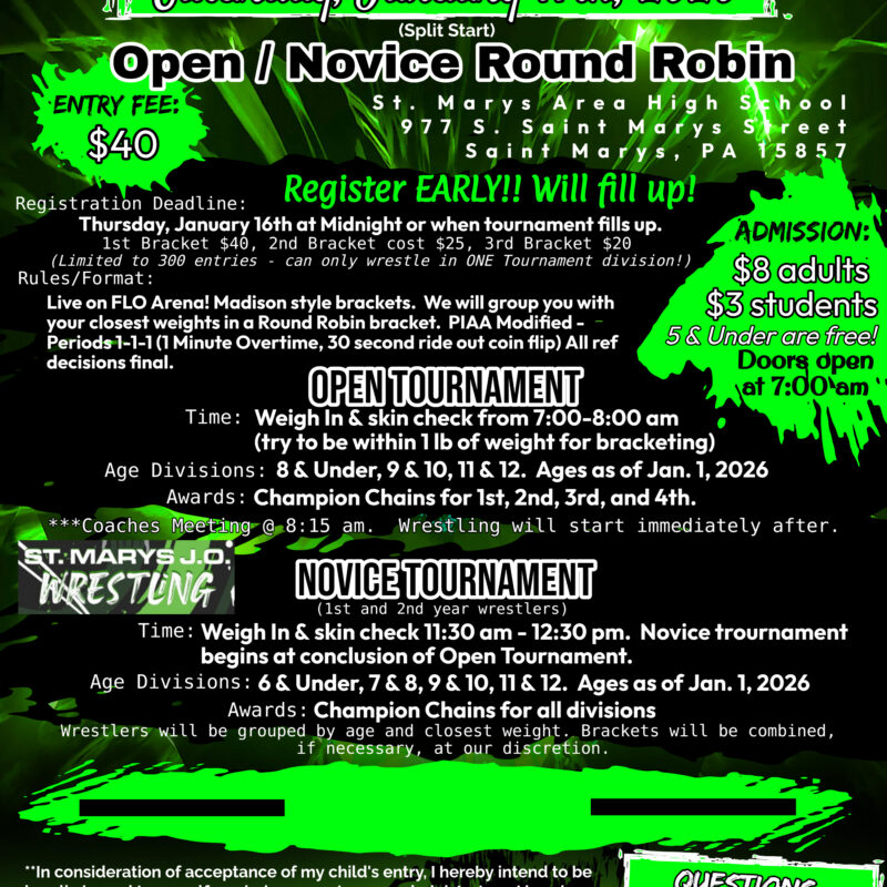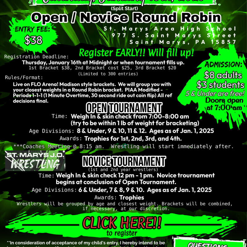 2025 St. Mary’s JO Wrestling Tournament Open & Novice 2025 St. Mary’s JO Wrestling Tournament Open & Novice
