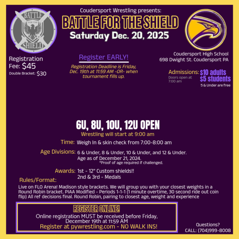 2025 Battle for the Shield Presented by Coudersport Youth Wrestling 2025 Battle for the Shield Presented by Coudersport Youth Wrestling